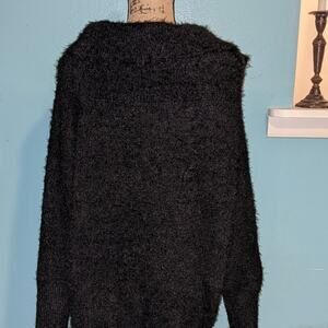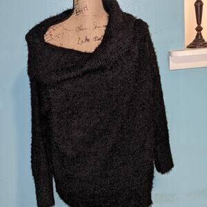 Black Cowl Neck Fuzzy Knit Sweater Cozy Pullover Warm Comfy