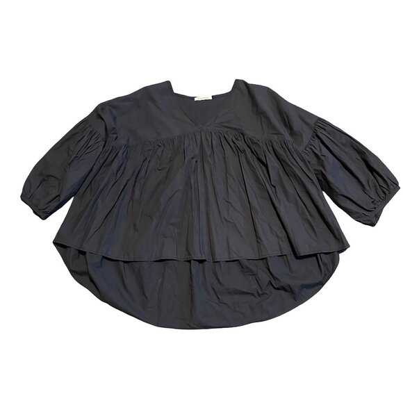 Black Crane Grey Oversized Flowy High Low Blouse Puff Sleeves Shirt Top Medium