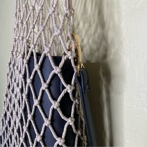 Black Cream Mesh Net Tote Bag with Diamond Pattern