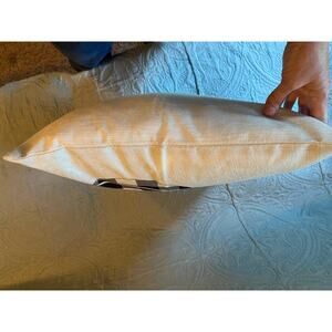 17 inch square zippered couch pillow. Pillow included! Neutral black and cream color scheme!