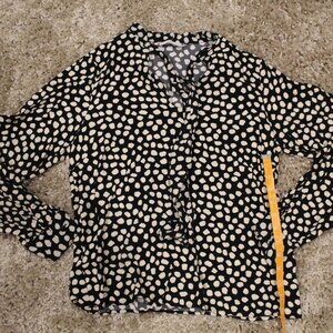 I purchased this lovely black and cream size medium top by Reserved last Christmas in Prague. It looks great with black dress pants or jeans! Only worn twice. See photos for measurements. Pet free, smoke free home.
