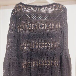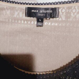 The Black & Cream Ruffled Top by Max Studio in size L is a stylish and versatile addition to any woman's wardrobe. This top features a flattering ruffle accent that adds a touch of sophistication to the classic black color.