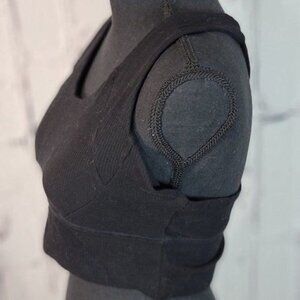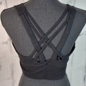 Black Criss Cross Back Thick Banded Waist Workout Bralette Sports Bra Sz Large
