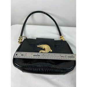 Black Croc Embossed Shoulder Bag With Gold Alligator Detail By Bueno