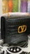 Chic luxurious shoulder bag in shinny black croc-embossed leather. Features striking gold logo detail. Perfect for elegant outings.
