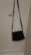 2 separate pockets, 1 zipper pocket, snap closure. worn a couple times. this is a very thin purse.