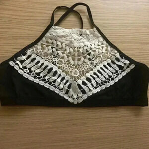 ▪️The crochet boho inset fabric is sewn and attached to a seamless bralette