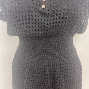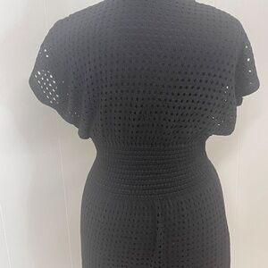 Black Crochet Knit Mini Dress Cover Up Size XL Short Sleeve Button Front