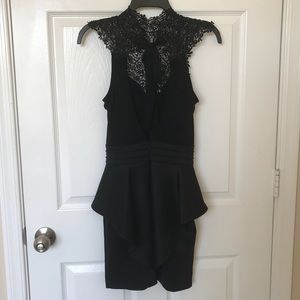 The Vintage Shop Black crochet peplum dress. Key hole back. In excellent condition.