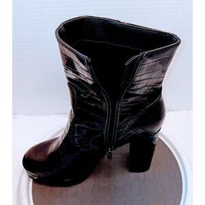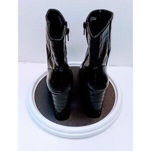 Black Crocodile Embossed Faux Leather Platform Ankle Boots With Side Zipper Clos
