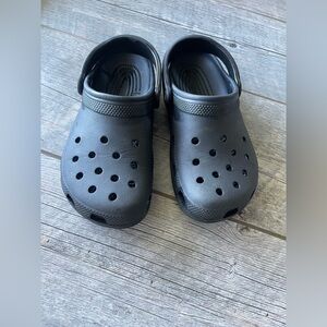 Sleek black clogs with ventilation holes. Comfortable and easy to wear.