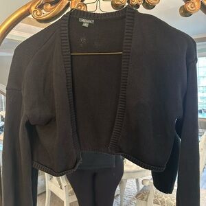 Stay cozy and stylish with this black open-front sweater. Perfect for layering and adding a touch of elegance to any outfit.