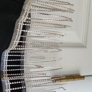 Black Cropped Cotton T-Shirt with Rhinestone Fringe On Bottom, L/XL