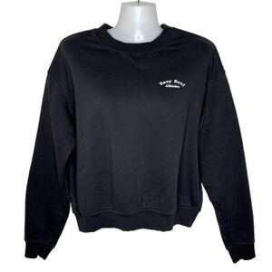 Black Cropped Long Sleeve Crewneck Sweatshirt
