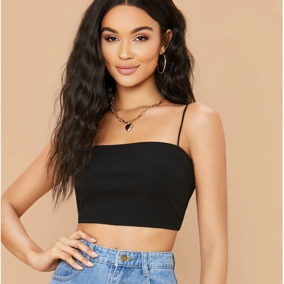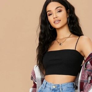 Black Cropped Ribbed Cami Top