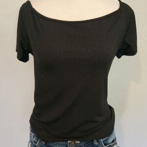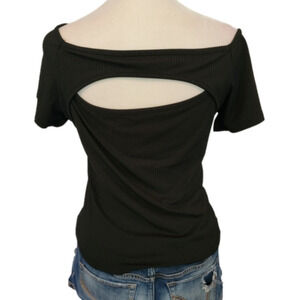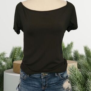 Black Cropped Ribbed Open Back Short Sleeve Tee Size L