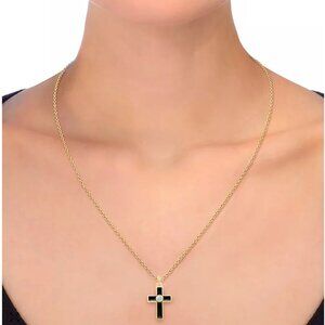 Black Cross Crystal Enamel Necklace and Earring for everyday wear Set, 3-Piece