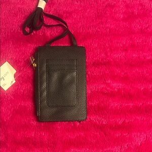 Sleek black crossbody bag with adjustable strap. Perfect for on-the-go style.