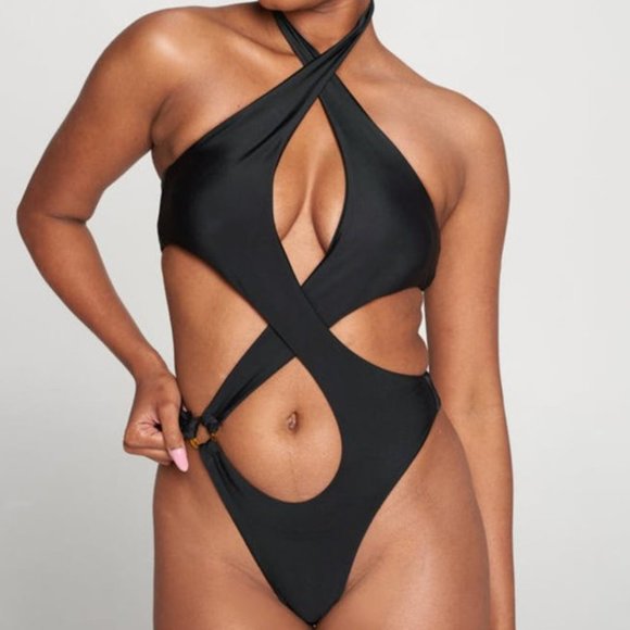 Black Crossover one piece Swimsuit