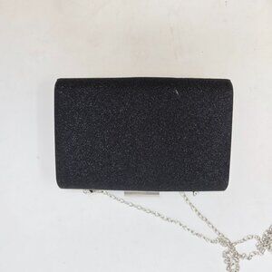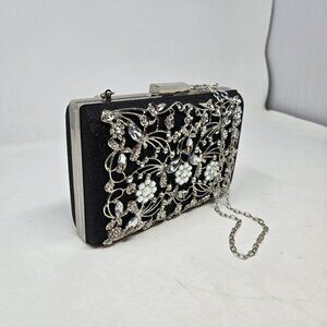 Black Crystal Embellished Sparkly Evening Clutch Silver Chain Formal Prom Homeco