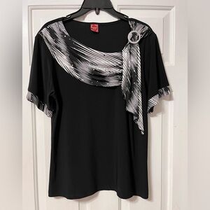 Black Cute Top Decorated with Sequined Scarf and sparkly broach. The size tag is missing