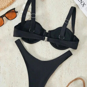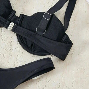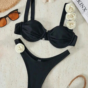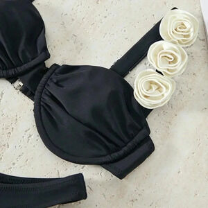 Black Cute Women's Wire Bra 3d Floral Sexy Bikini Set