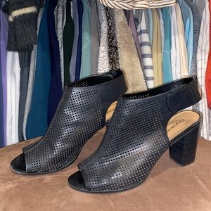 Extremely comfortable black cut out heels. Worn well but lots of life left! Will be the most comfortable heels you ever own.