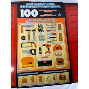 Unleash your child's inner builder with this amazing 100-piece tool set! The Black & Decker Tool Storage Trunk comes packed with all the essentials for an epic play construction adventure. Perfect for kids aged 3 and up, this set includes everything from a wearable safety vest and hard hat to a real fabric tool belt and a mechanical drill.