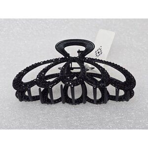 Black Decorative Hair Claw Clip With Rhinestone Detailing For Women Large Size