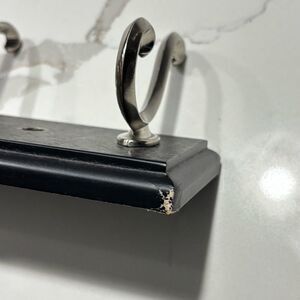 From Liberty Hardware, this 10 in. Scroll hook rail/rack is one of our most popular options. It's ideally suited to hold a variety of items like coats, hats, handbags, umbrellas, towels or robes. And with the 3 scroll hooks, reminiscent of iron work, it's a beautiful addition to any room.