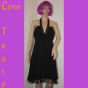 Another little black dress. Neckline is a little to daring for me....lol! Very gorgeous on! Material: 100% Polyester Shoulder to Shoulder: X Bust: 15" Waist: 12" Total Length: 37"