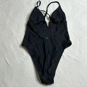Black Deep V Neck Crisscross Back Adjustable Strap one piece. Sz Small