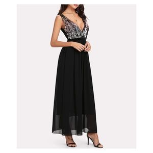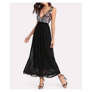 Black Deep V Sleeveless Sequin Contrast Maxi Dress