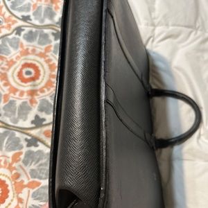 This black Demier handbag briefcase by Louis Vuitton is in good, used condition. The interior has two pockets and the exterior has leather handles. It is a leather briefcase by Louis Vuitton. Authentic. Great buy for those looking to buy a used, good condition bag. Looking to make more room in my closet. I love this bag. Pictures posted here. I will not text and will not sell outside of Poshmark. No scammers. I will not respond to scams. This is a vintage item. Great for every day use! Great for laptops, tablets, or on the go work electronics. Will hold an item and a plug or multiple.