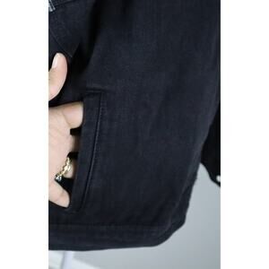 Black Denim Jacket Faux Leather Fringe Western Boho Oversized OX XL Short COTTON