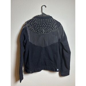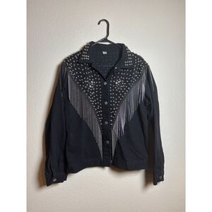 Black Denim Jacket Womens Oversized Sz L Studded Rivet Tassel Chain