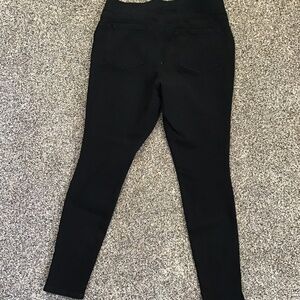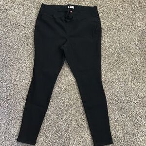 Details: elastic waist with tie detail (nonfunctional), 2 back pockets, 2 nonfunctional front pockets