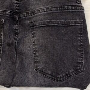 Stylish black denim tote bag with contrasting blue straps. Perfect for casual outings.