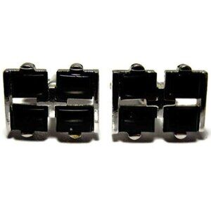 Black Designer Cufflinks by Shields Silver Tone Tux Shirt Dress Suit Vintage