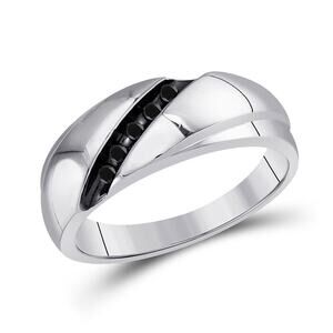 Black Diamond Mens Wedding Band Diagonal Row Ring 925 Sterling Silver