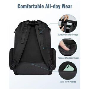 Black Diaper Bag Backpack for Men Women Travel Baby Bag with Insulated Pockets