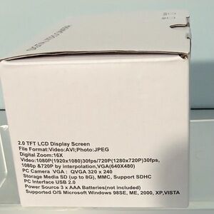 - File Format: Video: AVI; Photo: JPEG