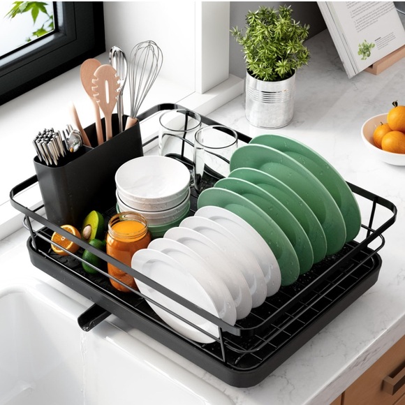 Stylish black dish drying rack. Perfect for organizing your kitchen.