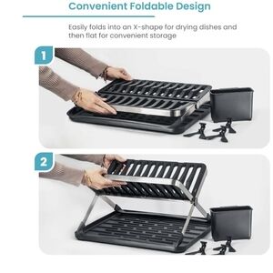 Efficiently organize your kitchen with the Black Dish Rack. Its sleek design and durable construction make it a perfect addition to any home kitchen.