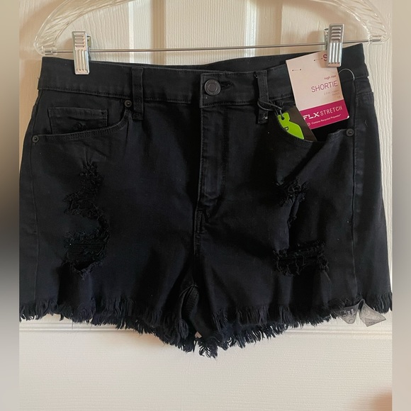 Black Distressed High Rise Shorts