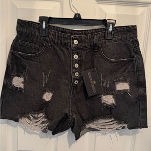 Black Distressed Women's Shorts
