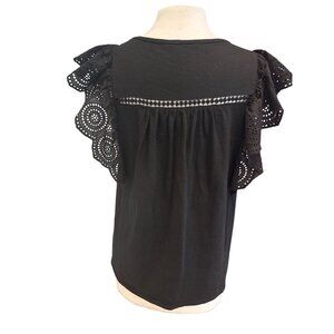 Black Doe & Rae Womens Eyelet Ruffle Sleeve Top M 100% Cotton