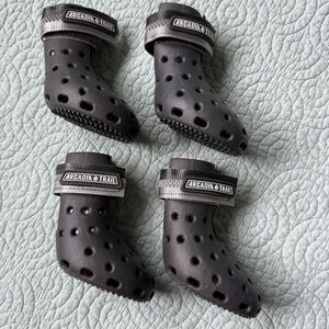 Dog Shoes for Hot Pavement,Non-Slip Waterproof Breathable Easy to Clean Put On and Take Off Dog Boots,Paw Protector for Hot Summer Roads Winter Snow Sturdy black booties with secure straps. Ideal for rugged terrain. Size medium. Never worn