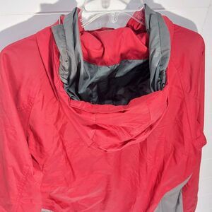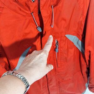 Flaws: Small whitish spot on sleeve. A tab is missing on a hoodie pull. Check photos for details. No holes or tears.