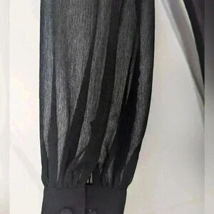 Black flowy long sleeve H&M Dress in size 4, double layered, sheer outer layer with gold zipper in the back and shank buttons on the cuffs. This dress is super versatile, given it’s flowy style can be used as a maternity dress. I bought it for my maternity shoot, super sleek and pretty.